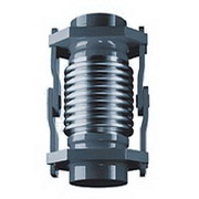 單式鉸鏈型波紋膨脹節通過其角度的變化來吸收管線、輸送通道或容器等沿其軸向方向因熱膨脹或收縮所引起的角向位移。通常兩件或三件組合使用,補償量與兩件產品間距離成正比,該波紋管膨脹節的體積小,重量輕,產品壓力推力由鉸鏈構件承受, 角向鉸鏈波紋補償器可以補償管線在任意方向的角位移。